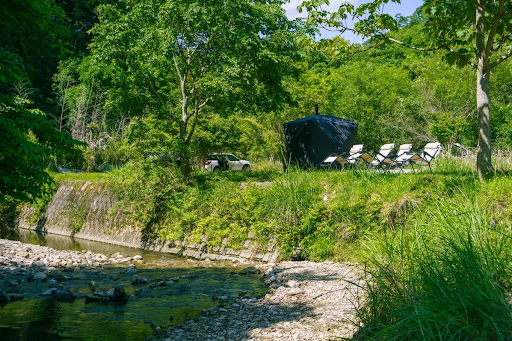 「Yamasobu Campground」は、里山や小川に囲まれた静かな環境でバーベキューを楽しめるスポットです。木々に囲まれた落ち着いた雰囲気は、都会の喧騒を忘れさせてくれます。